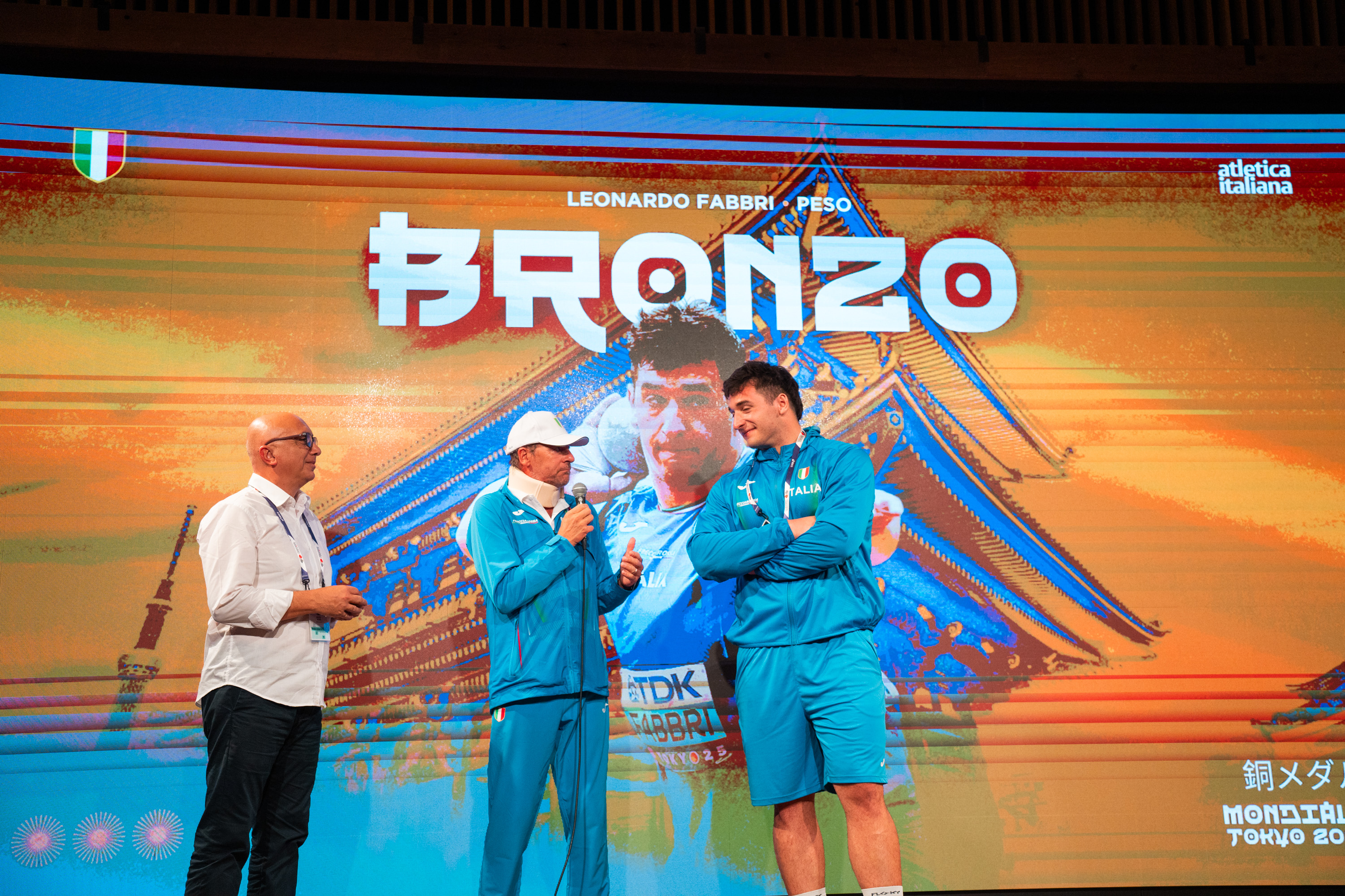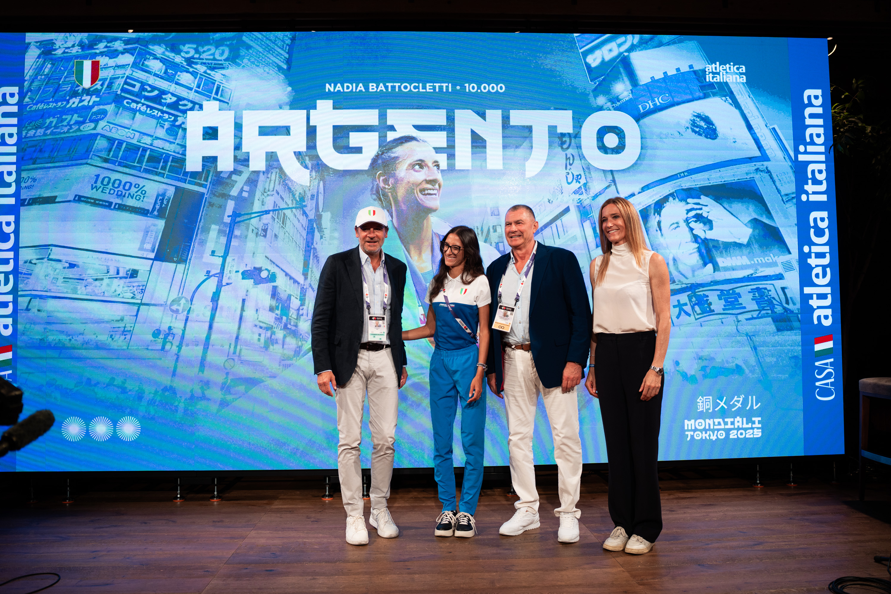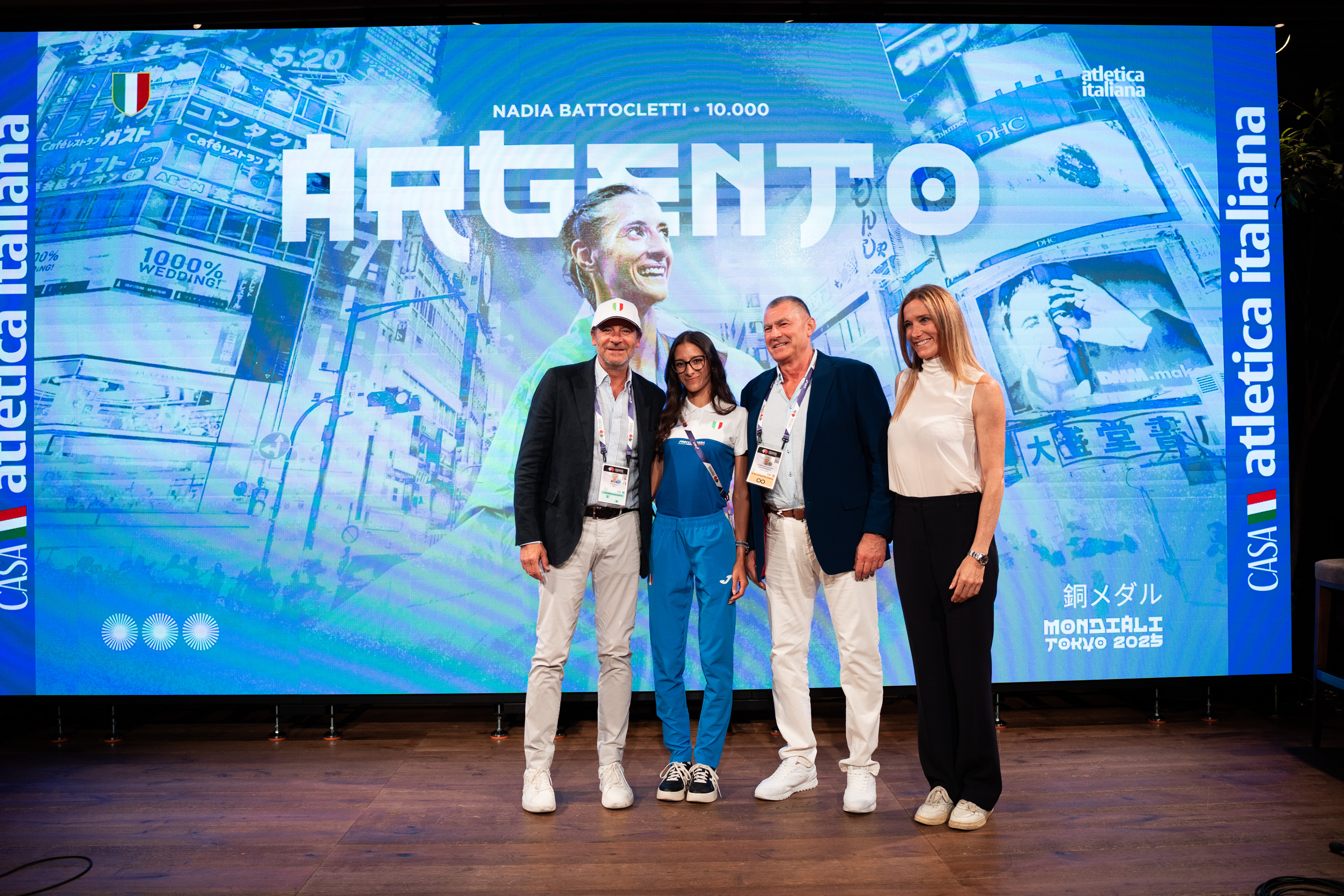 Mondiali Tokyo | Festa Palmisano-Fabbri-Battocletti Casa Atletica Italiana (ph. Cherubini/FIDAL)